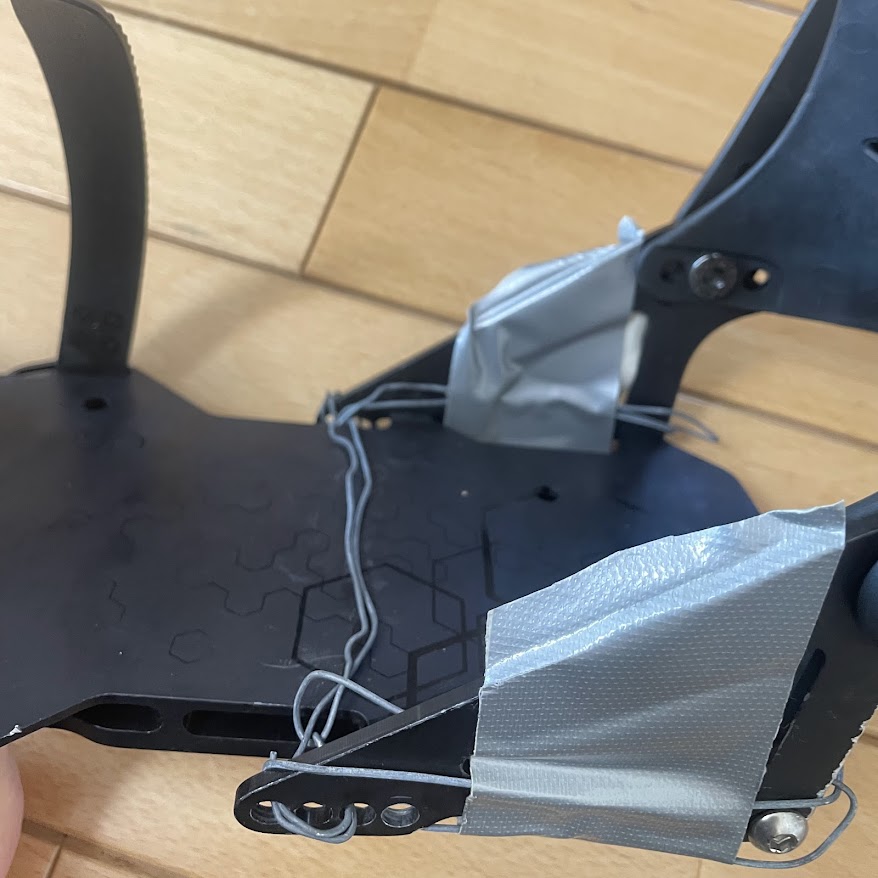 自分が持ち歩いているものを使用して直すとしたらと想定し、タイラップや細挽きを使用して直す方法も備忘録的に写真おいときます。