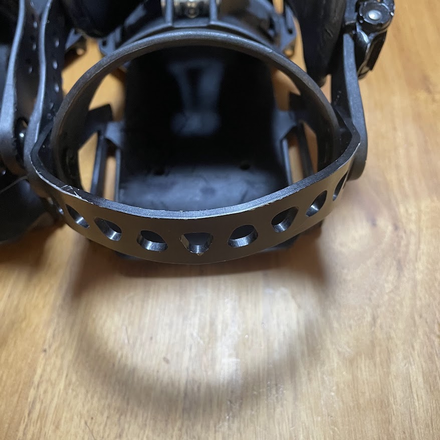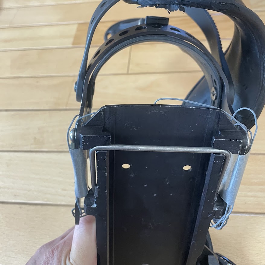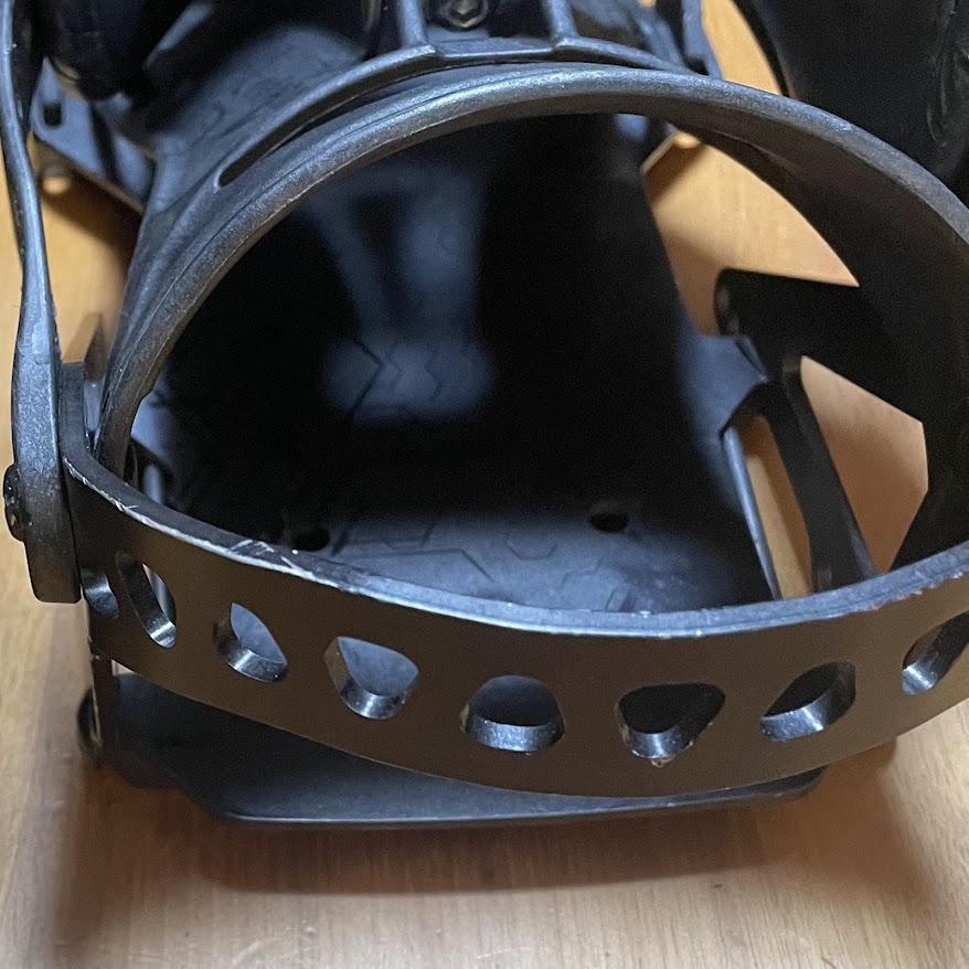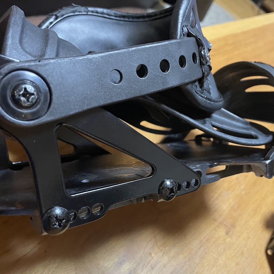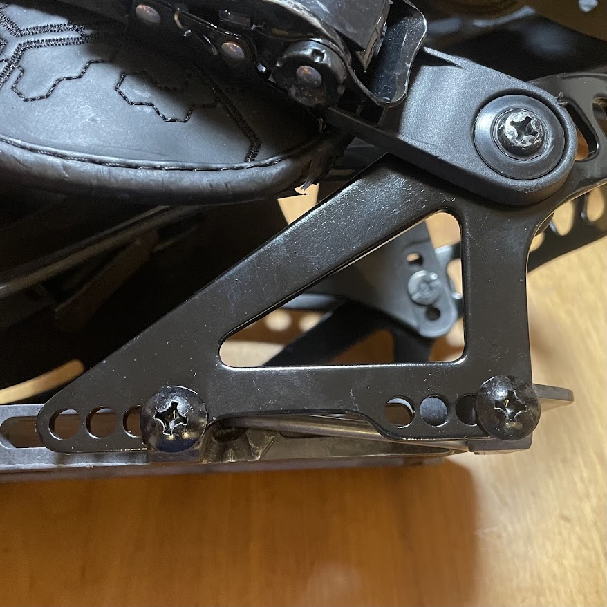 BurtonのビンディングなどでもおなじみのL字型に成形されたストラップが、ビンディングの所定のパーツにガッチリはまっているのですが、これが本当にマジでめっちゃ固い。 外そうとしても全然動かない。悪戦苦闘してなんとか外しましたが、正直、「女性や非力な男性だと交換するの無理!」だと思います。