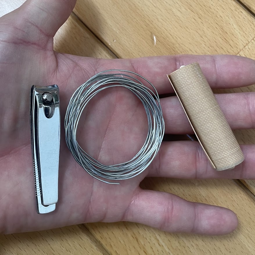 ちなみに番線を切るのに使用したのは「100均の爪切り」です。爪切りはハサミで代替できない機能を持っていますし、このようなフィールドリペアの際はニッパー代わりにもなります。使い捨てでも惜しくない価格と持ち歩くのに躊躇しない軽さで一個エマージェンシーキットに入れていくことおすすめのアイテムです。ちなみに全く刃こぼれしなかったのでそのまま使ってます!