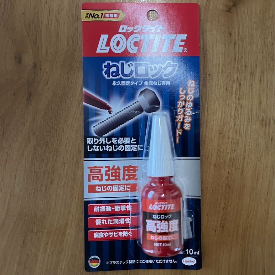 仕方ないので、こちらはロックタイト赤(めちゃくちゃ強力なネジの緩み止め剤)で固定し直し、ツアー中の脱落を防ぐ方向で対処しました。