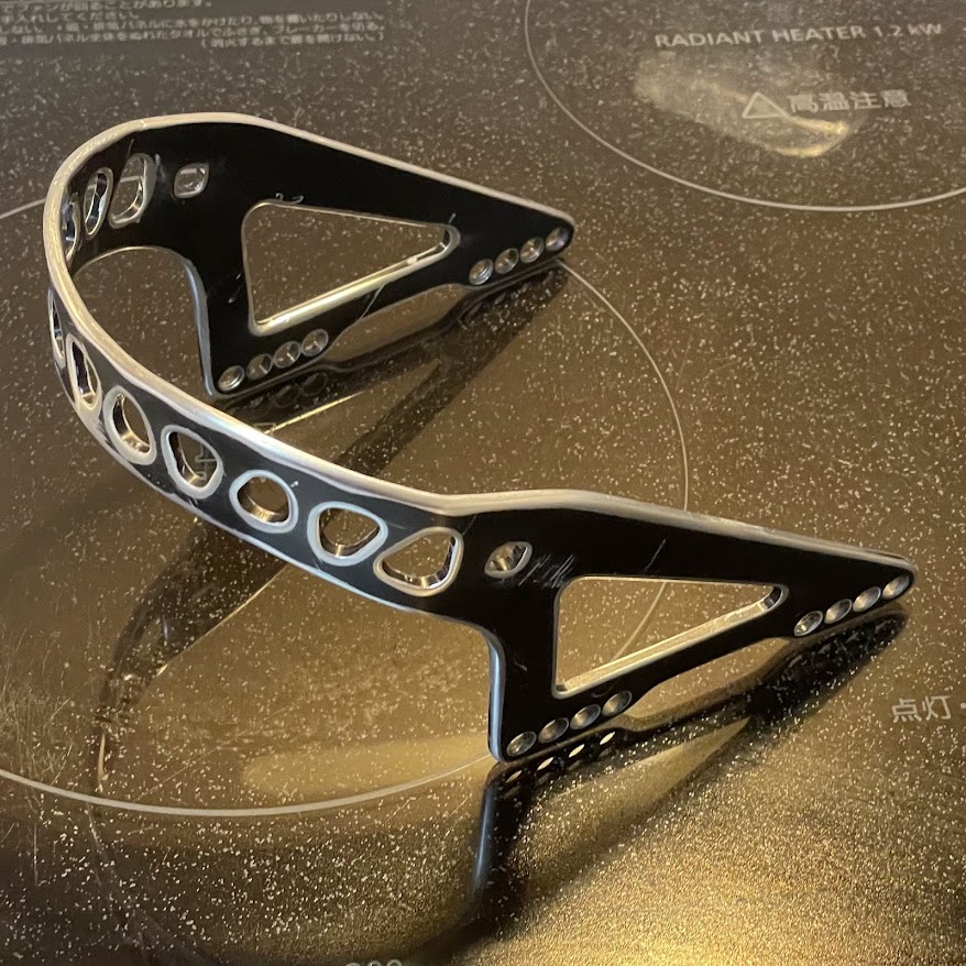 Spark R&Dのヒールカップは、アルミを切り出して作られています。軽くて剛性があって、スプリットボードのパーツとしては理にかなった設計です。